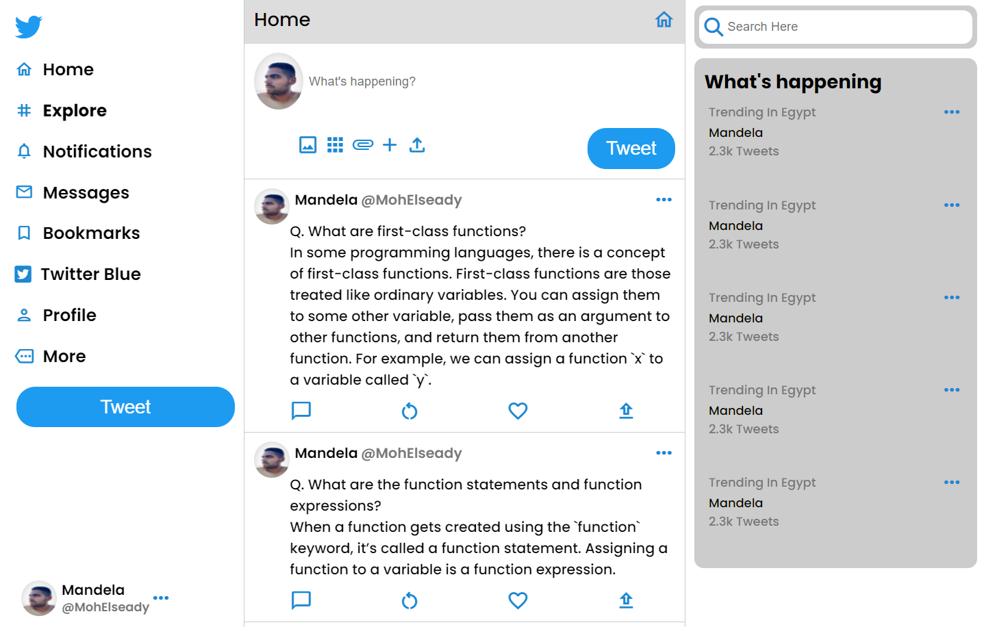 Developing interactive user interfaces with React.js, HTML5, CSS3, Bootstrap and JavaScript.